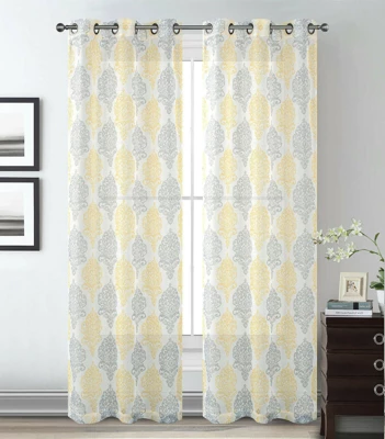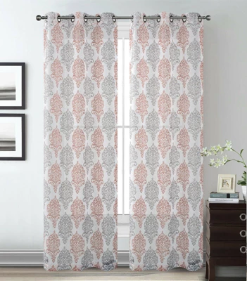 A Semi Sheer Royal Metalic Sparkle Dual Damask Themed Window Curtain Panel Pair. This window treatment will provide the perfect amount of privacy, while still allowing natural sunlight to flow into your home. Available in delicate color varieties, and will assure match any home decor motif. Ready to use out of the package.
