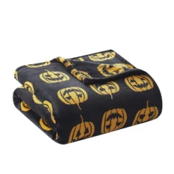 Kate Aurora Halloween Pumpkins Bats Rustic Orange & White Ultra Soft & Plush Throw Blankets