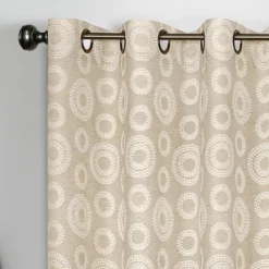 Kate Aurora Contemporary Woven Jacquard Modular Circles Grommet Top Single Window Curtain Panel