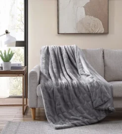 Kate Aurora Ultra Soft & Plush Oversized Queen Herringbone Embossed Fleece All Season Blanket