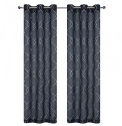 Kate Aurora 2 Piece Anael Embroidered Lattice Matte Sheer Grommet Top Curtain Panels – 84 In. Long