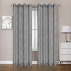 Kate Aurora 2 Piece Contemporary Chic Metallic Abstract Circles Light Filtering Grommet Top Curtains