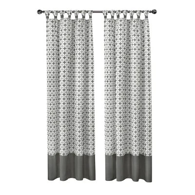 Farmhouse Chic Geometric Designed Tab Top Window Curtain Treatments For The Home. Features an exquisite geometric chic pattern and dual solid color coordinated design. Made of a durable polyester blend woven fabric. These window treatments will bring together any room. Ready to use out of the package. No detail was spared.