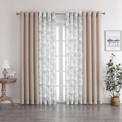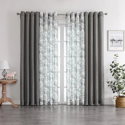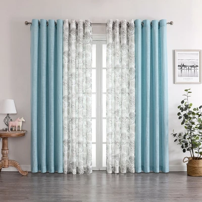 Add a whimsical grommet top sheer curtain panel set to any window in your home for an instant tropical summery feel. Consists of 2 solid sheer curtains and 2 printed floral sheer curtains. Grommet top header. Machine washable and dry able for easy care. Ready for immediate use.