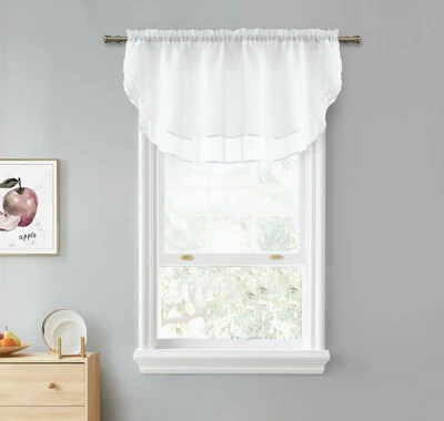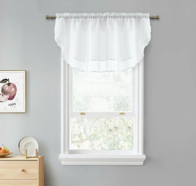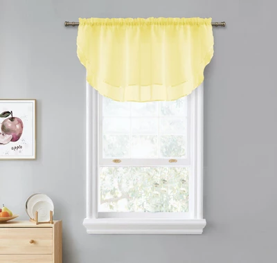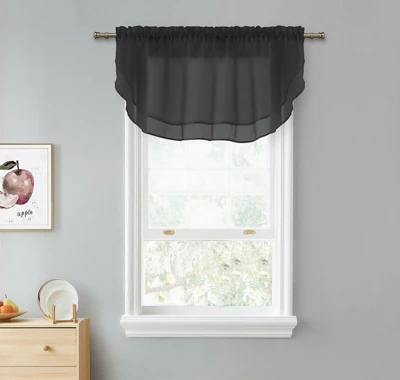 Introducing our exquisite double layered sheer rod pocket window valances, designed to bring a touch of beauty and elegance to any room. These charming valances effortlessly elevate the decor of your space, adding a stylish and airy accent that complements any color scheme. Available in a wide array of colors, you can easily find the perfect match for your existing decor or create a striking contrast for an instant pop of color. Whether you’re looking to brighten up a living room, add a soft touch to your bedroom, or create a welcoming atmosphere in the kitchen, these valances are the perfect choice. Crafted with meticulous attention to detail, these double layered sheer valances offer a delicate and sophisticated look. The sheer fabric allows soft natural light to filter through, creating a warm and inviting ambiance while still providing a sense of privacy. Easy care and convenience are key features of these valances. They are machine washable and dry able, ensuring effortless maintenance and long-lasting freshness. You can keep your valances looking pristine without the hassle of complicated cleaning procedures. Ready to use right out of the package, these valances make decorating a breeze. Simply hang them on any standard curtain rod with the rod pocket design, and voilà, your room is instantly transformed with a touch of elegance. These versatile and timeless valances suit a variety of spaces, from traditional to modern decor styles. Their classic design ensures they remain stylish and relevant for years to come. Elevate the beauty of your rooms with our double layered sheer rod pocket window valances. Experience the enchanting effect of sheer elegance and enjoy the ease of maintenance they offer. Choose from a wide range of colors and revitalize your space with these charming window accents. Add a touch of sophistication to your home decor and make a lasting impression on your guests.