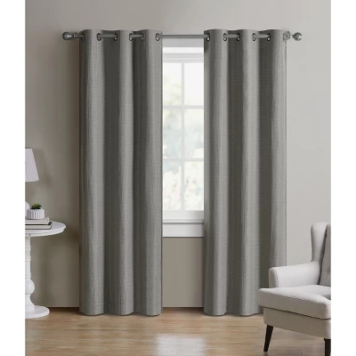 This 2-piece window curtain set features woven textured fabric in your choice of several solid colors and sizes to complement any bedroom, living room, or office décor. This window set’s light filtering design helps reduce light, reduce noise, and improve energy efficiency by keeping rooms cooler in the summer and warmer in winter. Both window curtains are made from 100% woven polyester material and have metal grommets at the top for easy installation, opening, closing, and styling. This window curtain set is dry clean. Ready to use right out of the package for immediate use. Perfect for narrow to standard width windows.