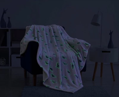 Immerse yourself with this super cozy dinosaurs themed throw blanket cover by Kate Aurora Living. Made from the softest fibers these blankets will make a great addition to any room they are added to. From watching TV or just lounging around there is no better companion. Fabric is hypoallergenic so that people of all ages with allergies can safely enjoy our product. They are pre shrunk and ready to use right of the package for immediate use. Edges are fully hemmed and our colors have been carefully chosen by our in home home decor team to best suit all types of decor motifs. Machine Washable and dry able for easy care use. For glow in the dark capabilities we suggest letting the blanket sit out of the package for about 5 minutes to gain full glow in the dark.