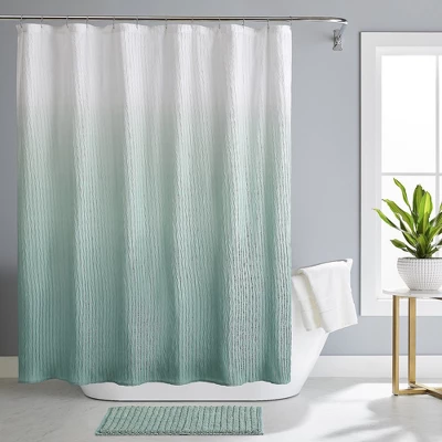 Give your bathroom a relaxing spa feel with this Kate Aurora Spa Essential fabric shower curtain. An eye-catching bath accent for your master bathroom or guest bathroom, this fabric shower curtain features a gradient white to aqua ombre print with crushed texture for a dimensional look and feel. Machine washable and dry able. Ready for immediate use.